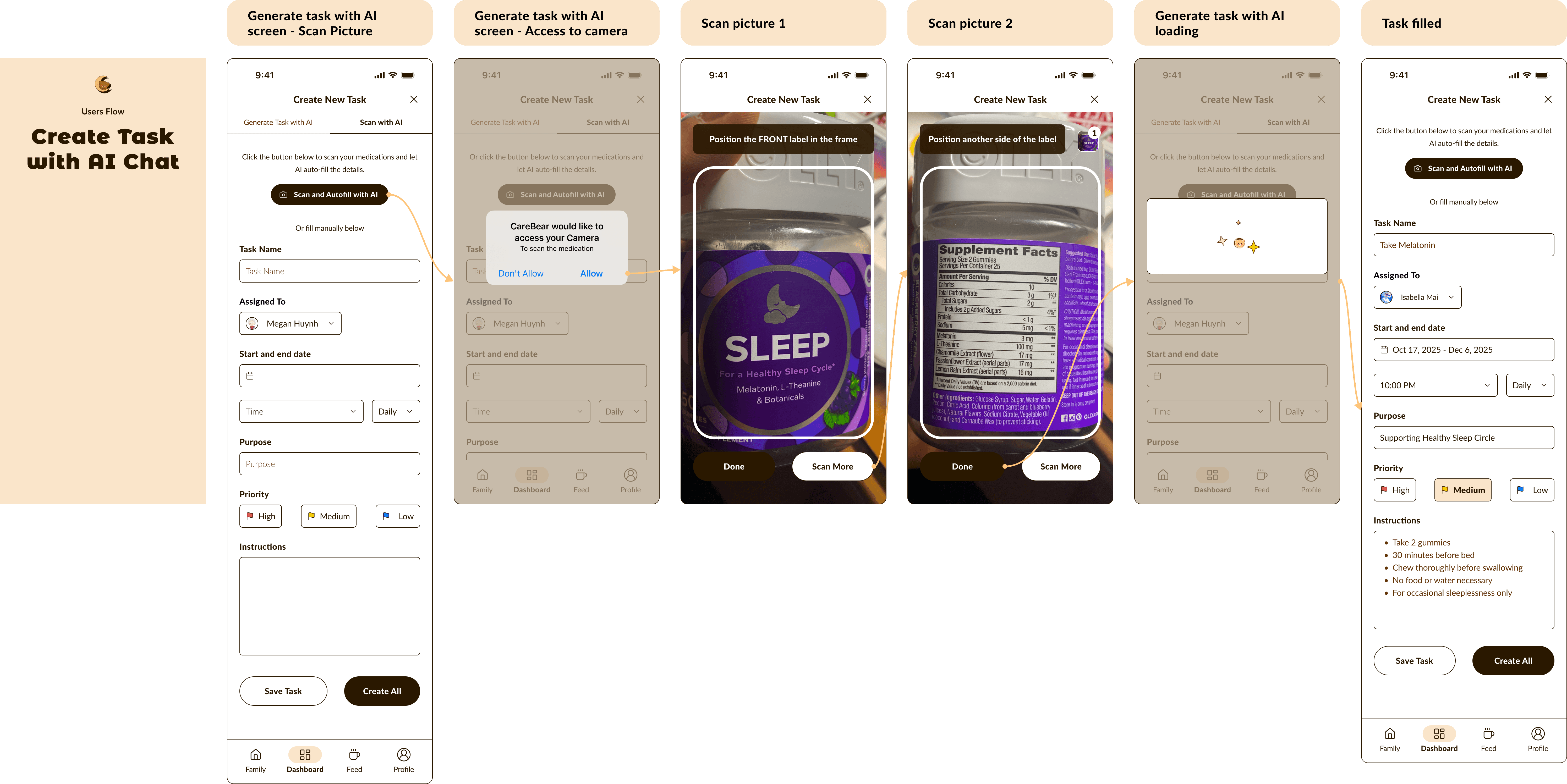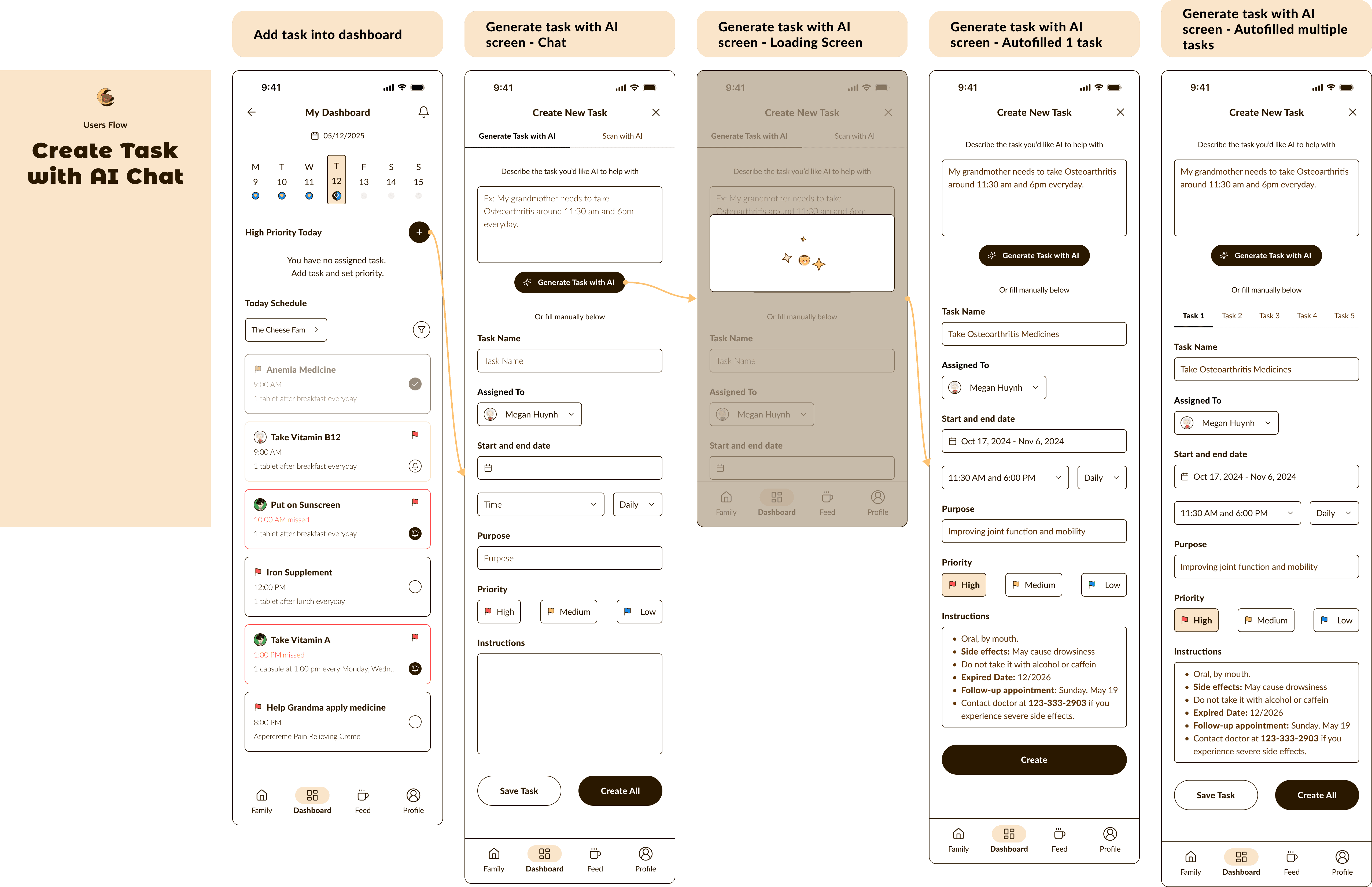 Next is AI-powered task creation. Instead of entering every detail manually, users can generate tasks effortlessly, simplifying care coordination for busy families.