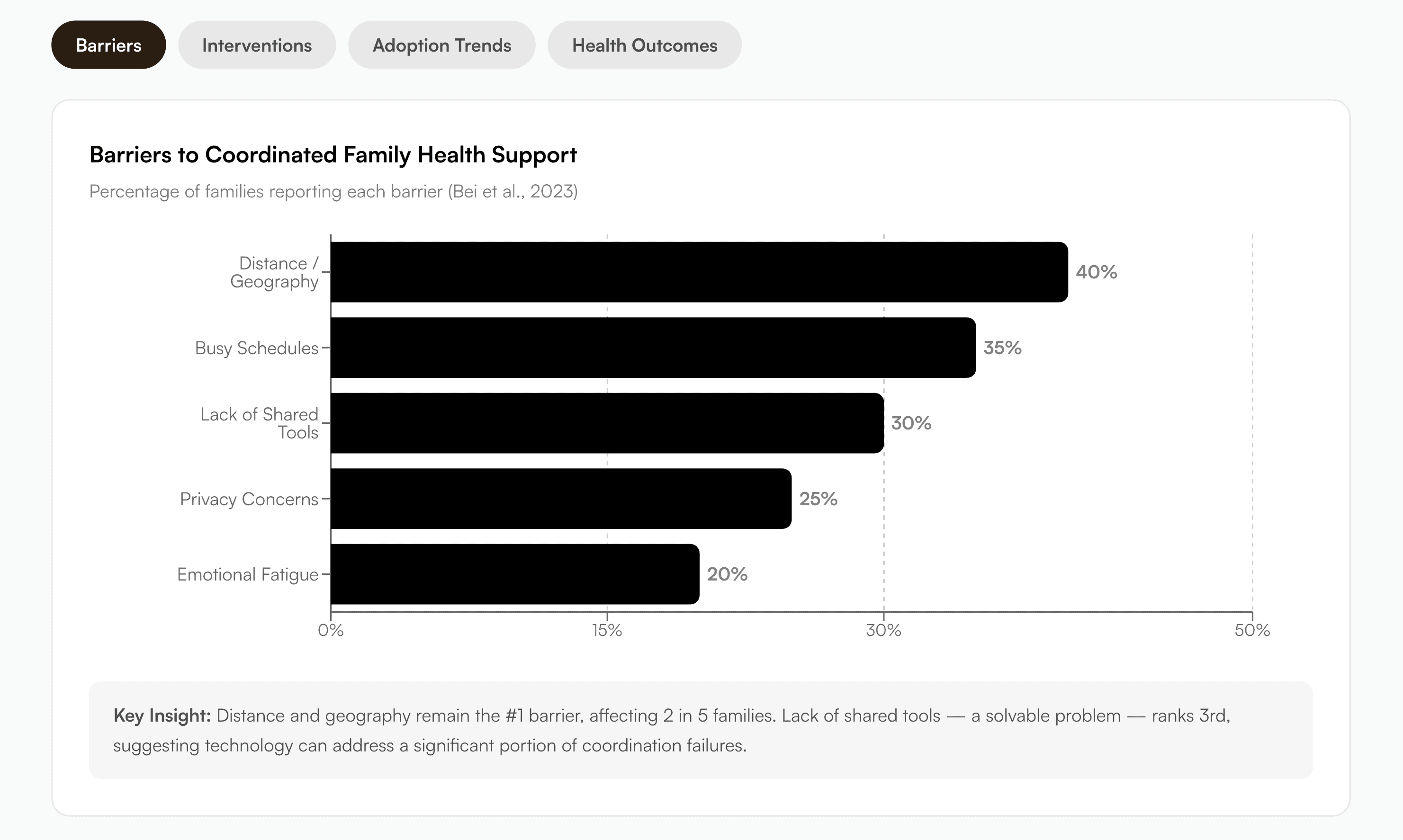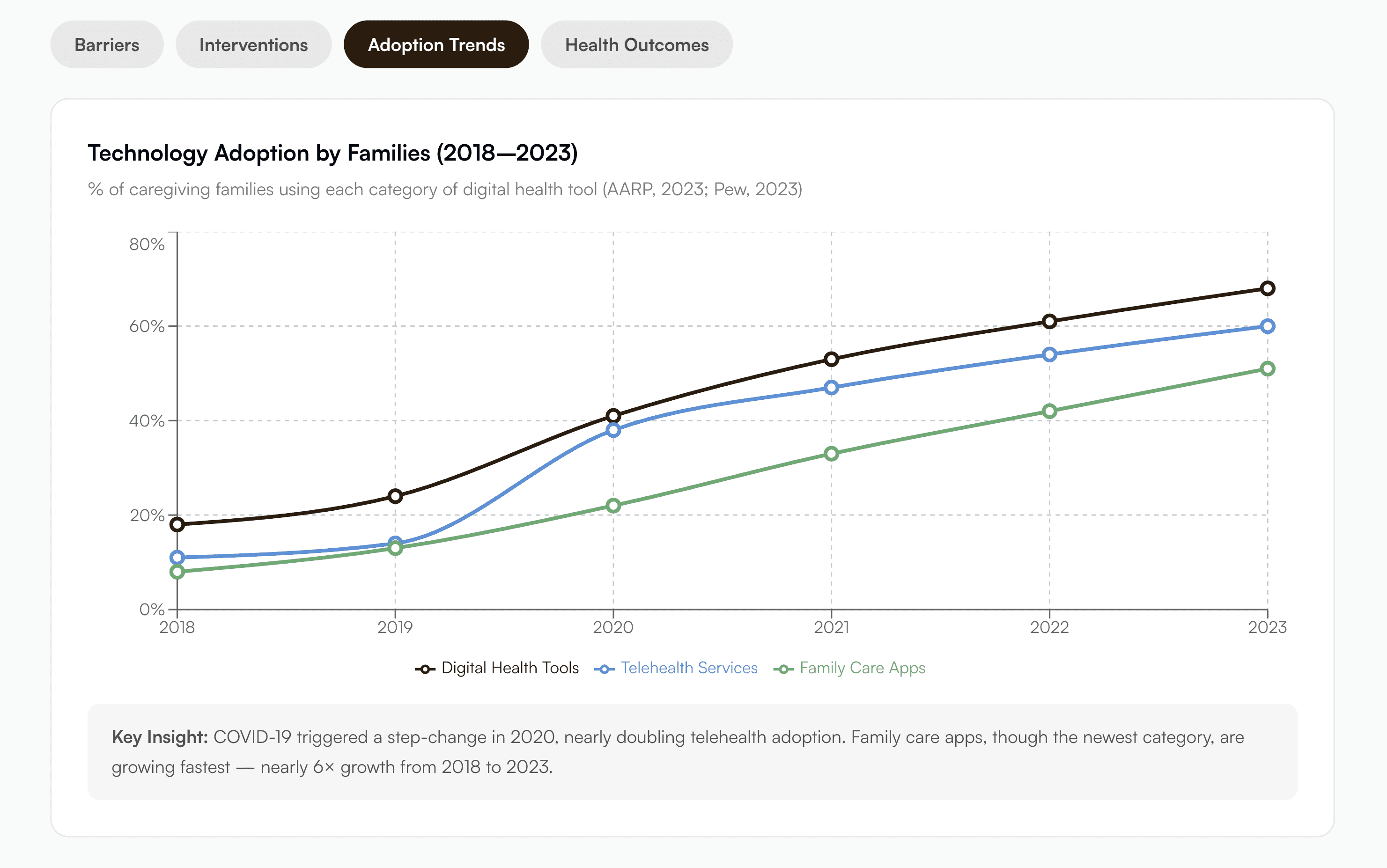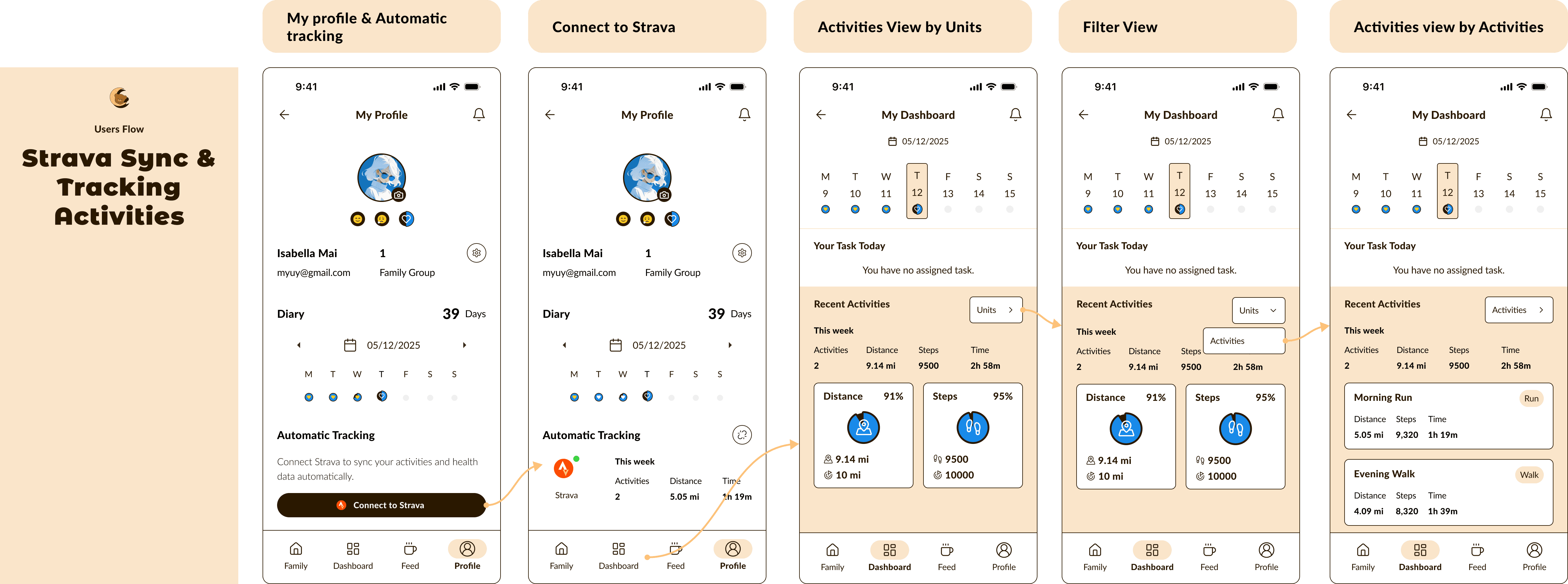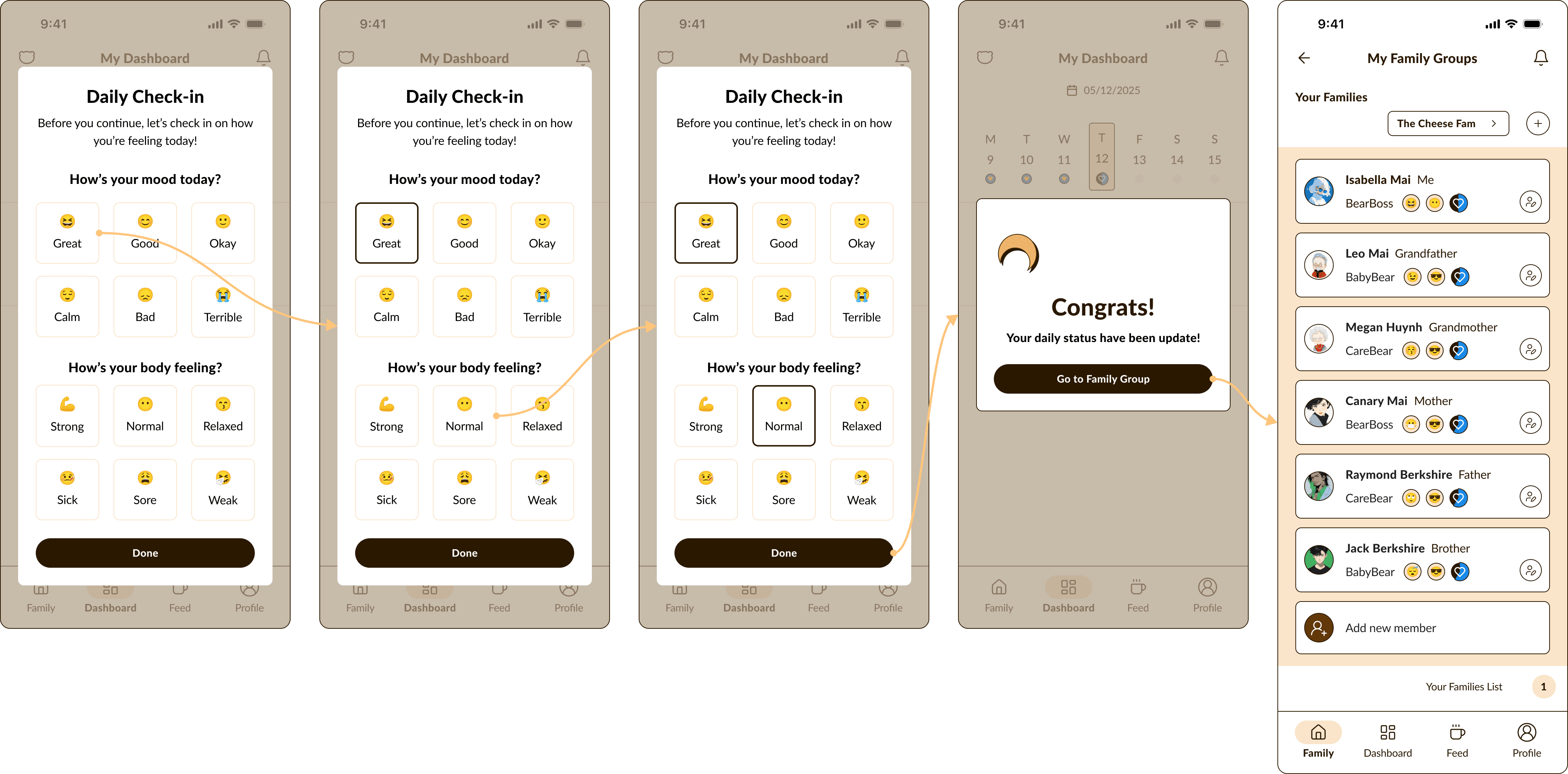 To bridge the gap of distance and time, I designed a shared family health space where members can check in daily on their mental and physical well-being.